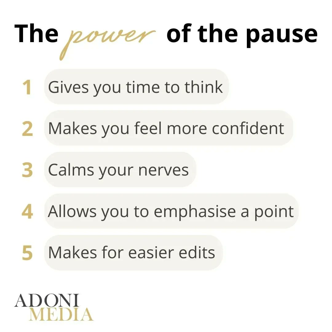 Do you say 'um' and 'ah' in media interviews? The solution - pause before you speak. Below are 5 benefits of the power of the pause. For more media interview tips from #AdoniMedia MD @LeisaGoddard go to: https://t.co/hiAnwjduV9