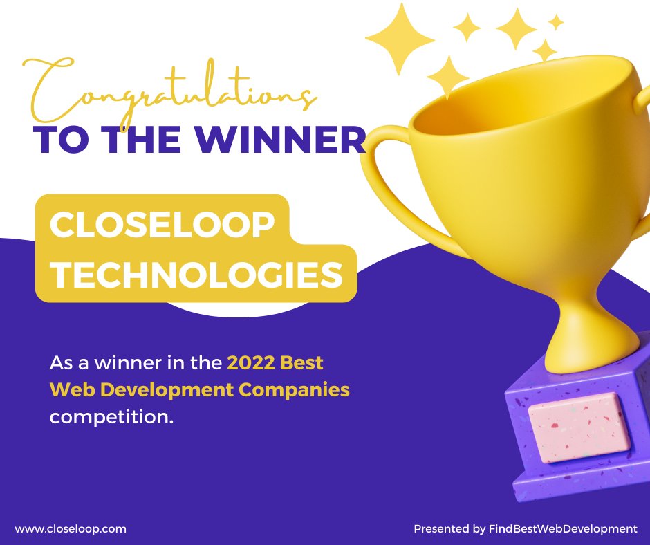 Closeloop Technologies is thrilled to announce that we have been named the 2022 Best Web Development Companies competition.🥳 A big thank you to @findbestwebdev team. Visit: https://t.co/XERdj28wPN #FindBestWebDevelopment #Closeloop #BestWebDevelopmentAgency #TeamSucces