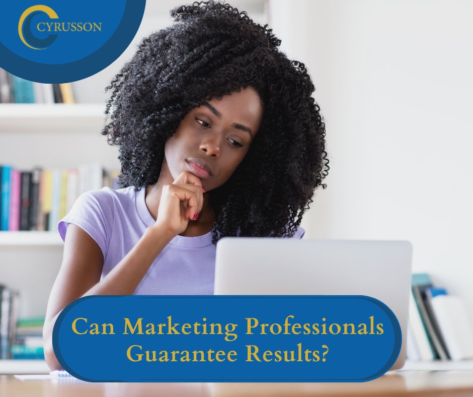 Marketing professionals can sometimes guarantee results, but it's important to be realistic about your expectations. Read this blog post for more information! https://t.co/FAUWTOC1Cs #Cyrusson #MarketingAgency #MarketingGuarantee #GuaranteeResults #MarketingCompany