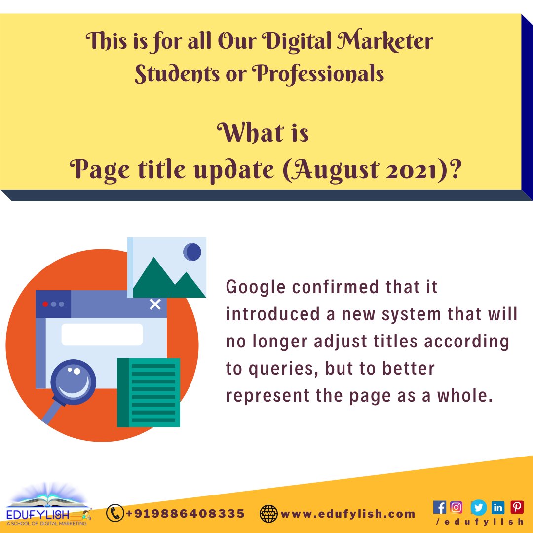 What is Page title update (August 2021)? See the Post to know the answer Contact us +91 9886408335 Visit us https://t.co/B15nFpq0v6 #seomarketingbangalore #careeropportunityhsrbangalore #digitalmarketingtraininghsrlayout #digitalmarketingtraining