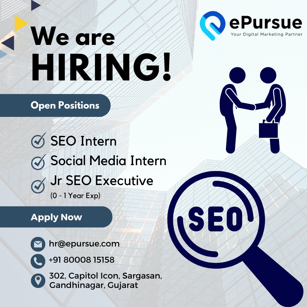 We are hiring SEO. Know anyone who might be interested? Feel free to share your resume at hr@epursue.com. Work Location: Gandhinagar, Gujarat #SEO #hiring