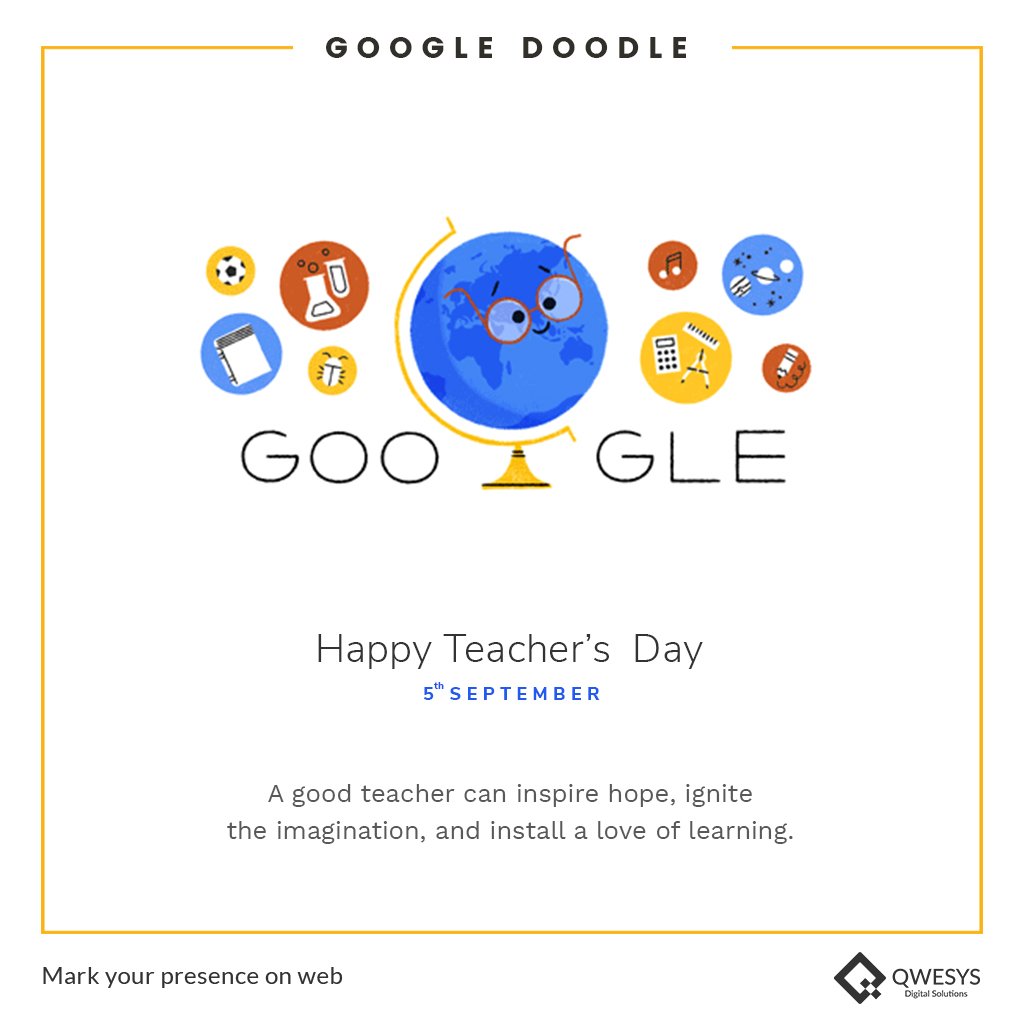 A good teacher can inspire hope, ignite the imagination and install a love of learning. #TeachersDay #5thSeptember #GoogleDoodle #HappyTeachersDay #WednesdayWisdom