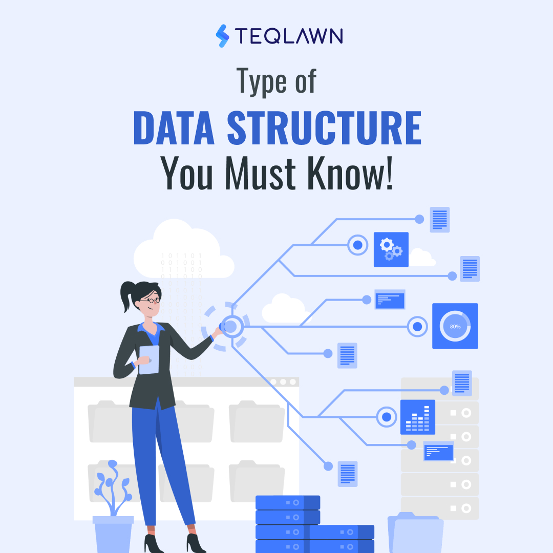 Data Structure is a core concept to understand. Here find the type of data structures you must know! 1. Array 2. Stack 3. Heap 4. Matrix 5. Hash Table 6. Queue 7. Linked List 8. Graph FOLLOW @teqlawn #datastructure #development #developers #webdevelopment #Wednesday