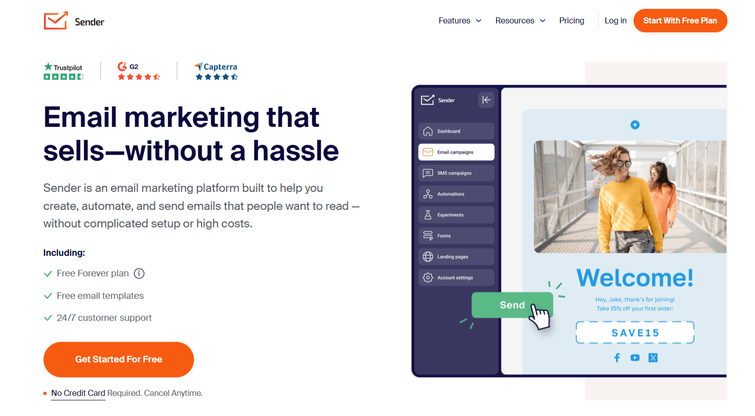 Price: Sender offers a generous Free Forever plan for up to 15,000 emails and 2,500 subscribers/month. Paid plans start at just $7/month and include advanced features like SMS campaigns and email A/B testing.